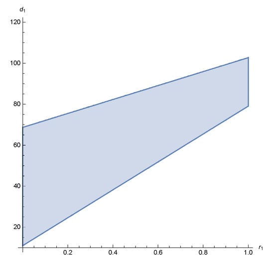 The region of , , satisfying the first inequality of the latter system, is depicted in Figure 1.