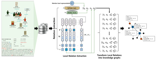 A knowledge graph–building model for entire relations is trained to extract all regional-level sentence relations that exist in the document and generate a knowledge graph through those relations. Then, relation information on each object is extracted from the knowledge graph and used to classify the semantic distance and final relations. This allows the extraction of not only fragmentary regional-level relations in the sentence but also relations represented across multiple sentences. A synchronization phase is required for both modules to perform this work, but it can be overcome by training two modules alternately.