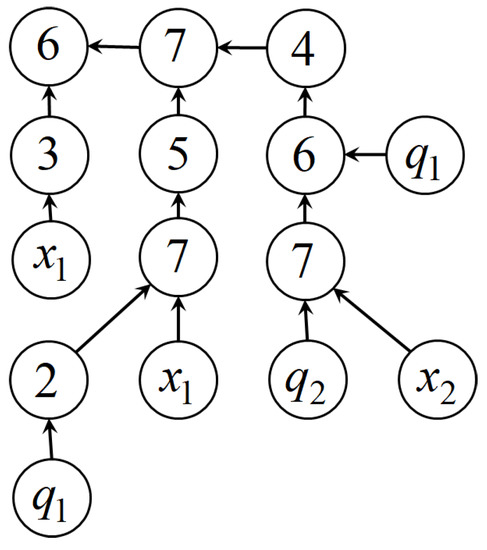 Another method of symbolic regression—the network operator method [14]—codes mathematical expression in the form of oriented graph. In the Figure 2 the network operator graph for the mathematical expression (39) is presented.