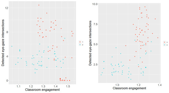Detected eye-gaze intersections as a function of the classroom engagement.