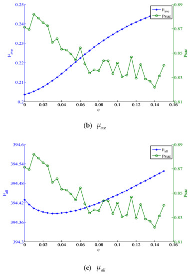 When , the shrinkage function shown as (7) is the same as (6). As can be seen from the graphs, when increases, increases, and decrease first and then increase, increases firstly and then decreases. and reach the minima when and respectively. It is worth noting that appropriate increase of leads to decrease of and but increase of . When , better and are obtained and the loss in is tolerable. Moreover, reaches the maxima. Therefore, 0.01 may be a moderate value for and is set to 0.01 in the simulations in Section 4.2, Section 4.3 and Section 4.4.