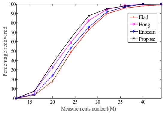 by Elad, Hong, Entezari, and proposed method versus measurement dimension .