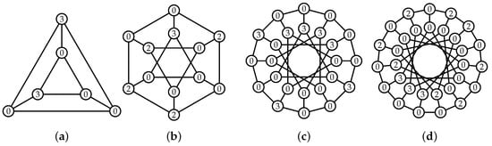 Without loss of generality, we set . Then and by symmetry we may assume that , , and . Furthermore, we have ; therefore, exactly one vertex of and exactly one vertex of are assigned 3, and all other vertices of are assigned 0 by f.