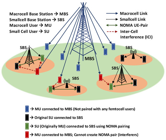 Small-cells deployed in a macrocell with non-orthogonal multiple access (NOMA).