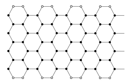 Let G be a connected vertex-transitive graph. Then it is both d-vertex-degree regular and σ-transmission regular. Then by Remark 1,. For instance, let H be the molecular graph of the polyhex nanotorus whose 2-dimensional lattice is depicted in Figure 3. It is cubic, 184-transmission regular, which is vertex-transitive [32]. Therefore.