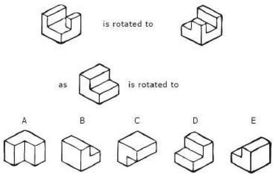 Sample Purdue Spatial Visualization Test: Rotations (PSVT:R) test question (correct answer D).