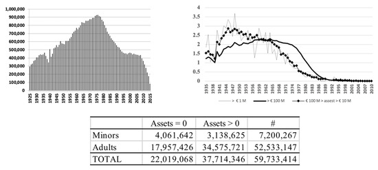 There are major changes in variability () in the evolution of the value of assets over time, see Table 2, which could be due to macro errors in taxpayer declarations that have to be accounted for. In this research, we have used data as declared and do not process possible errors.