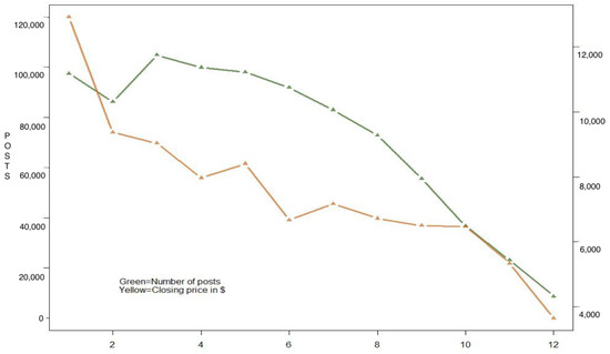 Figure 7. Nominal comparison between the monthly number of posts and the closing value in 2018.