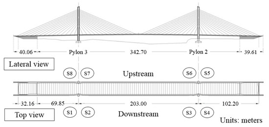 - Quintana, J.A.; Carrion, F.; Crespo, S. Damage detection on a cable stayed bridge using wave propagation analysis. In Proceedings of the 7th European Workshop on Structural Health Monitoring, Nantes, France, 8–11 July 2014; pp. 2052–2059. [Google Scholar]