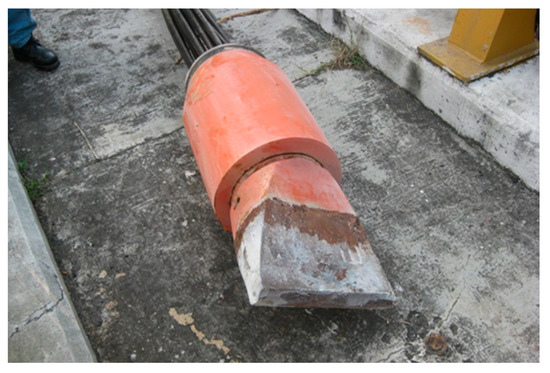 - López, A.; Poblano, C. Failure Analysis and Fatigue Tests of the Failed Anchoring Element of Rio Papaloapan Bridge Cable 11, Landside, Tower 3; Report; Mexican Institute of Transportation: Queretaro, Mexico, 2000. [Google Scholar]