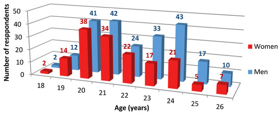 Our questionnaire survey included 224 men and 160 women. Thus, 48% of the total respondents were men and 42% women. The average age of the respondents was 22 years. The average driving experience expressed as the number of kilometers was at the level of 63,388 km. The composition of the respondents is shown in Figure 3.