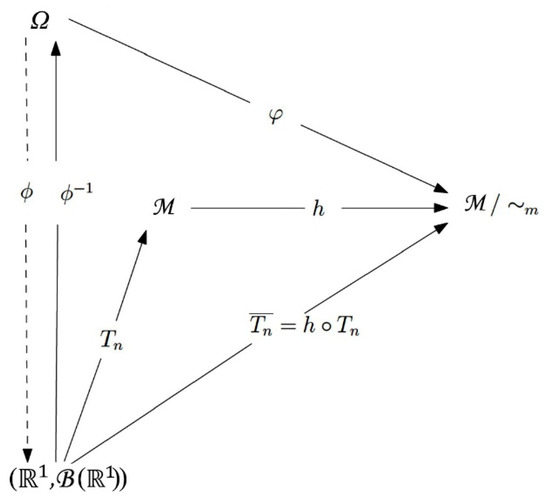 According to the assumption of independence of the sequence of fuzzy observables for every there exists joint fuzzy observable . To each fuzzy observable , exists the observable and a real function , such that . We define function such that . If , then . The main idea of the proof can be illustrated by Figure 1.