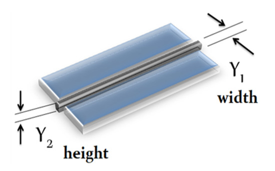 The experimental welding set up considers the weldment of a metal plate, henceforth the product. The process parameters of the GMAW to be analysed in this work are the Current () and Travel speed (), On the other hand, the quality characteristics of the product are the Width () and Height () of the welding bead as shown in Figure 1, so that the Multivariate Variable is composed by .