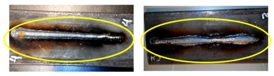 To define the appropriate values for the process and the weld bead, a visual inspection was carried out on the product as reported in [23,24]. To have an appropriate bead quality with an adequate degree of penetration as suggested by [25,26,27], the ratio , should be maintained.