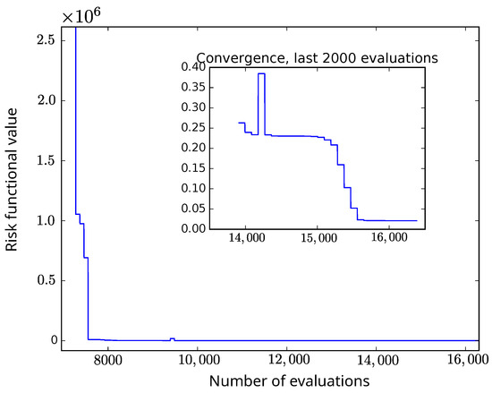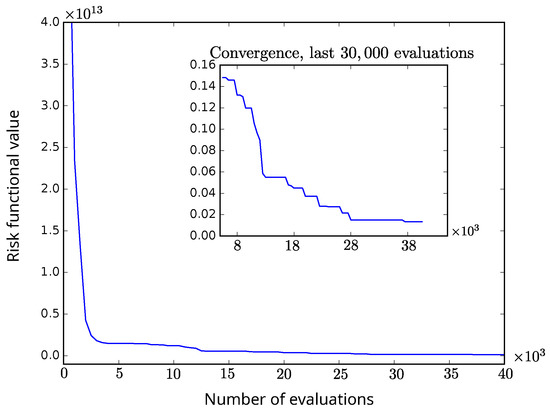 As a consequence, obtaining the model points portfolio is a very hard problem, as it is given by the solution of a global optimization problem in high dimension. Note that the number of policies in the model points portfolio, , defines the dimension of the problem. Therefore, efficient numerical methods are required to minimize the model points risk functional given by (13). Note that this risk functional is referred as the cost function in the literature related to optimization methods.