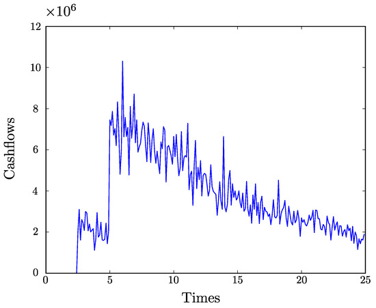 Cash flows associated to the original portfolio in Example 3.