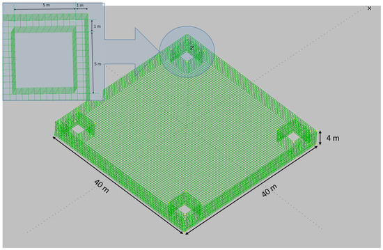 The second platform with 9840 total rectangular panels is modeled and the OWCs have a distance of one meter from the sides of the platform with the dimensions 5 m × 5 m × 10 m.