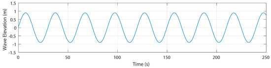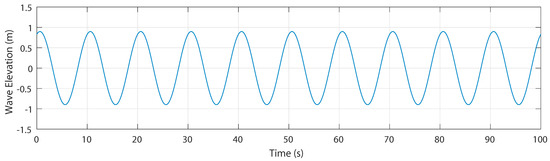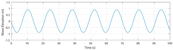 where is the propagation speed. A is the wave amplitude from Still Water Level (SWL) to the wave crest, and is the wavelength, which is the distance between successive crests. Equation (1) describes the temporal variation of a wave as a macroscopic representation of the oscillating motion of water particles at a specific point. To transfer the oscillating behavior to any point on the surface of the wave, a new variable representing the spatial dimension in the wave’s front direction is introduced. Therefore, Equation (1) becomes: