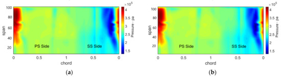 Pressure Contours of the Blade: (a) CFD; (b) XGBoost Model.
