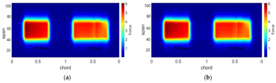 Aerodynamic Force at the Blade Pressure Side: (a) CFD; (b) XGBoost Model.