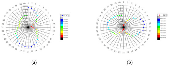 The indicators as the coefficient of determination R2 and the root mean square error (RMSE) were introduced to evaluate the accuracy of the established XGBoost model. The fitness of the prediction to the observation can be represented by the coefficient of determination R2, which was defined as the ratio of the regression sum of squares to the total sum of squares. This coefficient is often used to evaluate the merits and demerits of a regression model. If the coefficient of determination R2 is calculated to be close to 1, it indicates that the regression model is effective. RMSE is the square root of the ratio, which is the square sum of the errors of prediction values to the number of observations. The optimal parameters of the model and the optimal prediction results were obtained through model training
