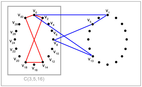 Every contains exactly five edges of and exactly three edges incident with any of its vertices. Hence, has to be a multiple of 5 and a multiple of 3. Analogous observations are valid for 2-split systems of order and for their subsystems of order v. From these facts, one can conclude that the following conditions are necessary. Natural numbers v belonging to the listed residue classes are referred to as feasible orders.