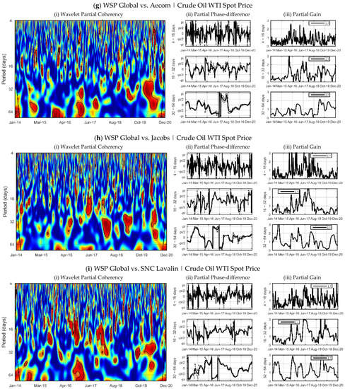 Our purpose is to discuss the co-movements among the stock return of the five largest consulting engineering companies. In order to control factors that may drive the fundamentals of the companies we employed the partial wavelet coherency (PWC) with the WTI crude oil spot price as instrument (z) to capture the cycle of the worldwide economy activity.