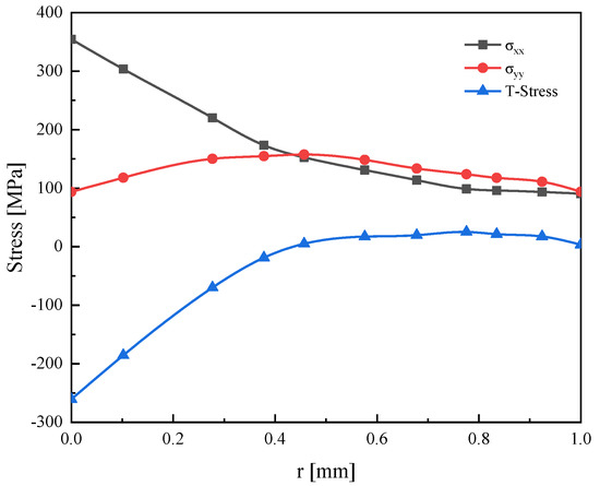 - Yang, B.; Ravi-Chandar, K. Evaluation of elastic T-stress by the stress di€erence method. Eng. Fract. Mech. 1999, 64, 589–605. [Google Scholar] [CrossRef]