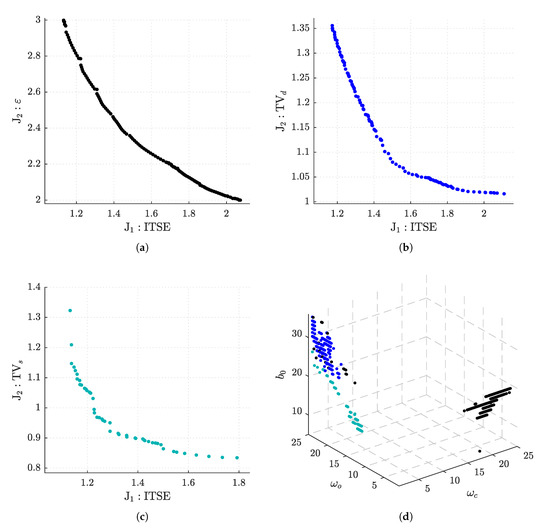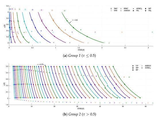 Once the LADRC stability region was obtained, interest was put in the performance computed with those combinations of parameters. Particularly, the ITSE for load disturbance rejection, the robustness, and the Total Variation of control action (TV) were defined as design objectives as stated in Table 1.