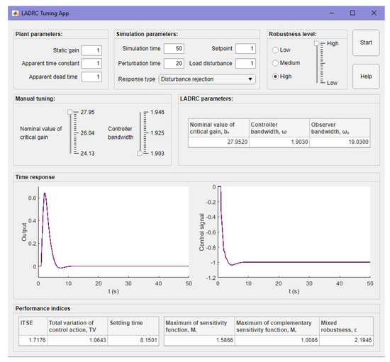 - The designer could use the rules to obtain intervals for each LADRC parameter and adjust the selection according to the preferred performance. An LADRC tuning Matlab app (available at Matlab central [18]) was created for this purpose. Within this tool, the user can also vary the robustness level to visualize the performance with the corresponding calculated parameters.