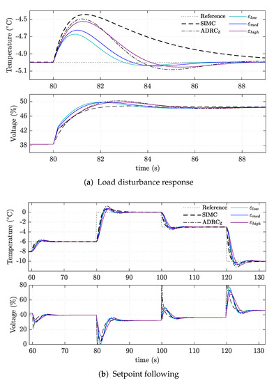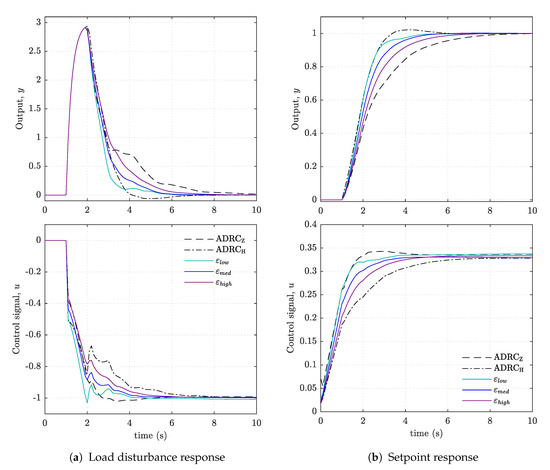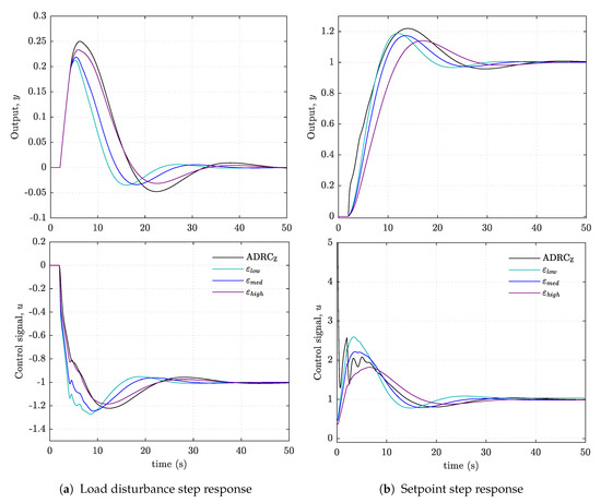 Therefore, by proper selection of , and , the second-order LADRC estimates and rejects the load disturbances acting on the loop.