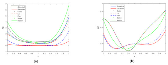 (a) AE of Kriging approximation functions in the three-dimensional question; (b) AE of Kriging approximation functions in the five-dimensional question.