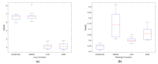 The Levy and DixonPrice benchmark functions belong to the first and second types of functions, instead of focusing on one type of function. This shows that the method proposed in this paper is applicable to various types of functions. Figure 10, Figure 11, Figure 12, Figure 13 and Figure 14 also show that the results obtained by the HKM-HS algorithm have better stability and accuracy. In short, the test results of 10 benchmark functions show that compared with AME, MMSE and LHD, the HKM-HS method has higher modeling accuracy and stability. Therefore, it is feasible to apply the HKM-HS method to practical cases.