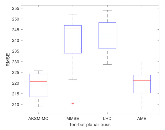 Table 7 shows the RMSE results of 30 runs of each method. Figure 18 is the box plot of RMSE. From Table 7 and Figure 18, it can be seen that compared with AME, MMSE and LHD, the HKM-HS has the smallest average value and standard deviation of RMSE. This shows that the HKM-HS method has the highest modeling accuracy and stability. Therefore, compared with the other three methods, the HKM-HS method is more suitable for solving this problem.