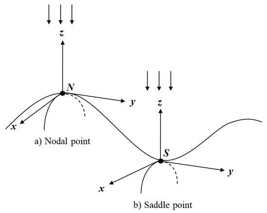 The current work considers unsteady MHD mixed convection near the stagnation point in the three-dimensional flow of Al2O3–Cu/H2O hybrid nanofluid. In this problem, and are the velocity component through and axes with the origin at the nodal stagnation point , as displayed in Figure 1. and Twy(y,t) are the variable temperatures, and is the surrounding fluid temperature, where denote the opposing flow and apply to the assisting flow. We assume that and , where T0 is the characteristic temperature of the surface of the sheet, with for assisting flow and denotes the opposing flow, while L is the characteristic length of the surface of the sheet. Here, is a parameter showing the unsteadiness of the problem towards , time. Generally, signifies the steady inviscid flow, accelerates the outer potential flow, while corresponds to the reverse flow. The outer flow is assumed to be and in and axes, respectively. Noticeably, , where represents the three-dimensional stagnation points parameter or ratio of velocity gradients at the edge of the boundary layer, with and are the principal curvatures parameter at or the velocity gradients at the edge of the boundary layer along the and axes, respectively [43,44]. Both are positive constants. Further, corresponds to the axisymmetric case, while is the plane stagnation flow problem. If are positive, the solution of the corresponding equations results in nodal points of attachment, that is, . On the contrary, the saddle points of attachment are declared if and are negative, that is, . Also, it should be noted that when , the problem will convert to a two-dimensional case, while the axisymmetric case can be regained as The plane of the body remains stagnant and there is a mass flux velocity denoted by as the surface is permeable, with referring to injection and representing the suction condition. The transverse magnetic field is considered normal, where is the magnetic field strength. From the above assumptions, the governing boundary layer equations can be defined as [9,43]: