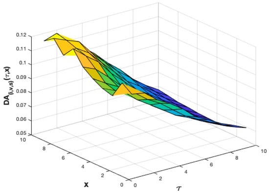 where the symbol denotes the set of possible durations (value of the backward process) at time Equation (56) can be expressed as follows: