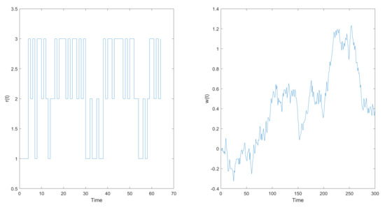 In this section, before studying numerical examples, we simply simulate the generation of Markov chains and Brownian motions. Let the state space Markov chain be in with a transition probability matrix as