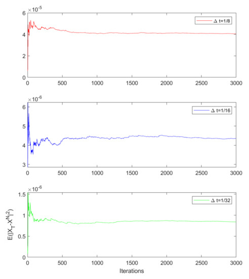 - Fan, Z.; Jia, Y. Convergence of numerical solutions to stochastic differential equations with Markovian switching. Appl. Math. Comput. 2017, 315, 176–187. [Google Scholar] [CrossRef]