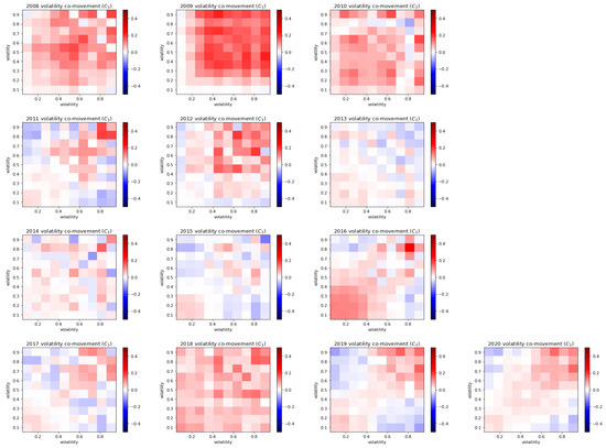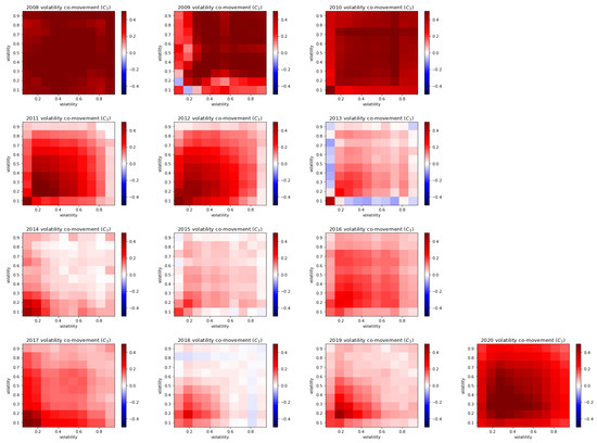 Volatility monthly co-movement for each year in the period 2008–2020.