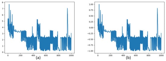 This section provides a detailed description of the data collection and preprocessing strategy. Recent studies have shown that the performance of trained artificial intelligence (AI) models depend on the input data. Therefore, if the smart meter’s data are well polished and organized, they can assist in training any model of AI in a more convenient way. The consumed energy data obtained from meters installed on each floor of a residential building is stored in a raw, incomplete, and non-organized format. Moreover, sometimes the data contain abnormalities due to wire break, occupant’s behavior, and weather condition. Hence, using these data directly for energy consumption forecasting degrades the overall performance of the model. Therefore, we first passed the obtained data to the preprocessing step in which missing values are handled by replacing subsequent values. The pre- and post-processing data distributions are shown in Figure 2; we removed noise from the data and normalize them via min–max process while the outliers are detected and removed using the standard deviation method. There are 1.25% missing values in the Household Dataset, which are filled with the corresponding values of the previous 24-h data.