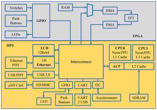 The SoCKit Cyclone V FPGA card powered by an ARM Cortex® A9 Hard Processor System (HPS) was used to implement the EEG signal processing algorithms and the classifier. Figure 2 shows the basic SoCKit functional blocks.