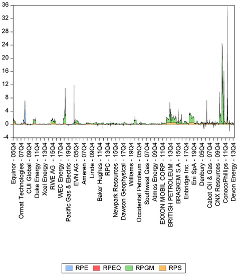 The electricity, gas and oil companies selected for this empirical research were the following: (a) companies from the electricity sector: Ameren, American Electric Power, Consolidated Edison, Covanta Holding, CUI Global, DTE Energy, Duke Energy, Edison SpA, Enel SpA, Energias de Portugal, Engie Brasil Energia, E.ON SE, Equinor, Evergy, Eversource Energy, EVN AG, Hawaiian Electric Industries, Korea Electric Power Corporation, NextEra Energy, NorthWestern Corporation, Ormat Technologies, Pacific Gas and Electric Company, PPL Corporation, Public Service Enterprise Group, Southern Company, RWE AG, TC Energy, Texas Pacific Land, WEC Energy Group, Xcel Energy; (b) companies from the gas sector: Archrock, Baker Hughes, Atmos Energy, Canadian Natural Resources, Dawson Geophysical, Enterprise Products Partners, Flotek Industries, Gazprom, Halliburton, Helix Energy Solutions, Imperial Oil, Linde PLC, National Fuel Gas, Newpark Resources, New Jersey Resources, Northwest Natural Gas, Oceaneering International, Occidental Petroleum, ONEOK, PGS, RPC Company, Schlumberger, Southwest Gas, Spire, Suncor Energy, Tetra Technologies, Transportadora de Gas del Sur, Ultrapar Participacoes SA, Williams Companies; (c) companies from the oil sector: Braskem SA, British Petroleum, Cabot Oil & Gas, Callon Petroleum, Cheniere Energy, Chevron, Cimarex Energy, CNX Resources, ConocoPhillips, Continental Resources, Denbury Resources, Devon Energy, Endbridge, Eni SpA, EOG Resources, Exxon Mobil Corporation, Genesis Energy, Global Partners, Lukoil, Murphy Oil, PDC Energy, Petroleo Brasileiro SA, Pioneer Natural Resources, Repsol SA, Royal Dutch Shell, Southwestern Energy, Suburban Propane Partners, Total SE, YPF SA.