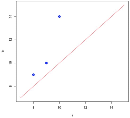 From Example 1 we consider the features , , and . Then, the feature has its birth point at and its death point at ; the feature has its birth point at and its death point at . Finally, the feature has its birth point at and its death point at . As a consequence, the set