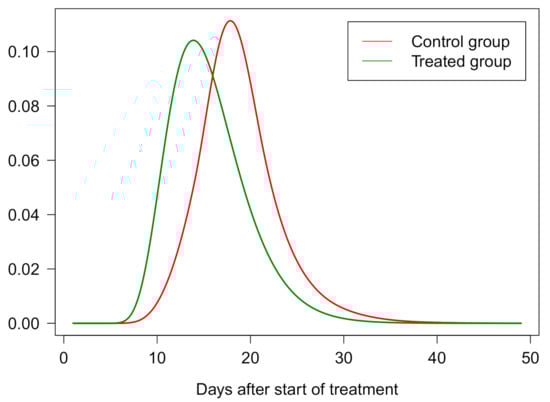 However, other alternatives can be considered to evaluate, or compare, the effect of the treatments. Among them, we can highlight the analysis of survival or hazard functions associated with in the control and treated groups, which are not usually used in this context by medical researchers. These functions can easily be determined from the density function of .