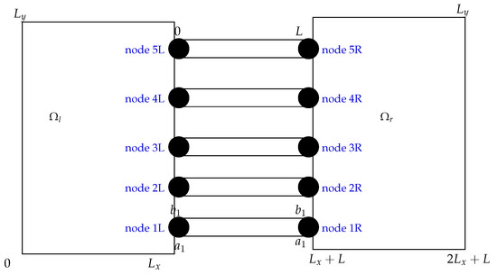 3.2.1. Discretization of Transmission Conditions for the 2D-Doubly Parabolic and 1D-Hyperbolic-Parabolic Case