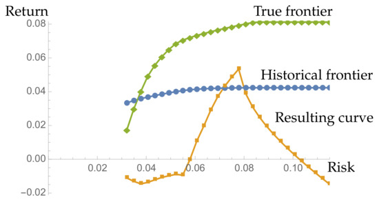 Now let be the vector of historical returns provided by the n assets in the -th period and, for each level of risk R, let be the true return provided by the efficient portfolio corresponding to R in the -th period. The set of pairs form the so called resulting curve (which, of course, is only known a posteriori).