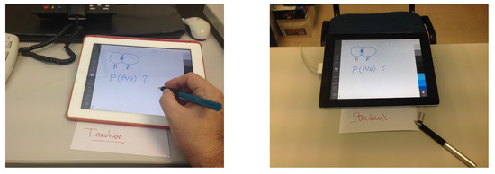 - Teacher tablet → Student tablet (see Figure 6): When both teacher and student use the same type of device, they can interact on a shared document through a specific app (see [24]).