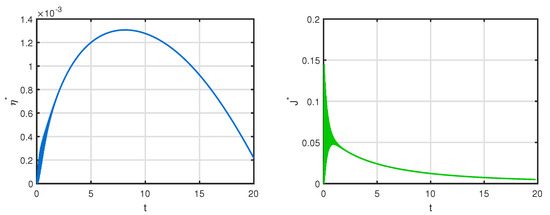 Analytical study is incomplete without numerical verification of the results. In this section, we have presented numerical simulation of system (3) and fractional order control problem (27). We have used FDE12 MatLab function which is designed on predictor–corrector scheme based on Adams–Bashforth–Moulton algorithm introduced by Roberto Garrappa [