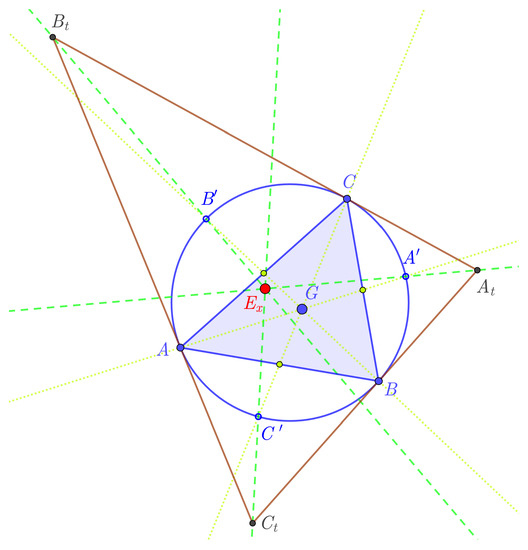 - Kimberling, C. Encyclopedia of Triangle Centers. Available online: http://faculty.evansville.edu/ck6/encyclopedia/ETC.html (accessed on 8 December 2020).