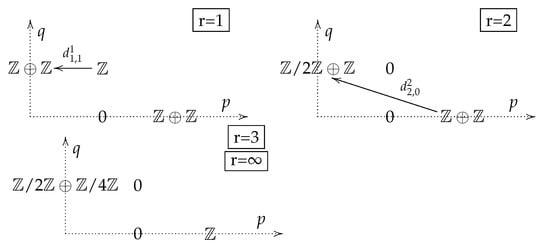The associated spectral sequence is represented in Figure 3, with differential maps given by the matrix and defined by .